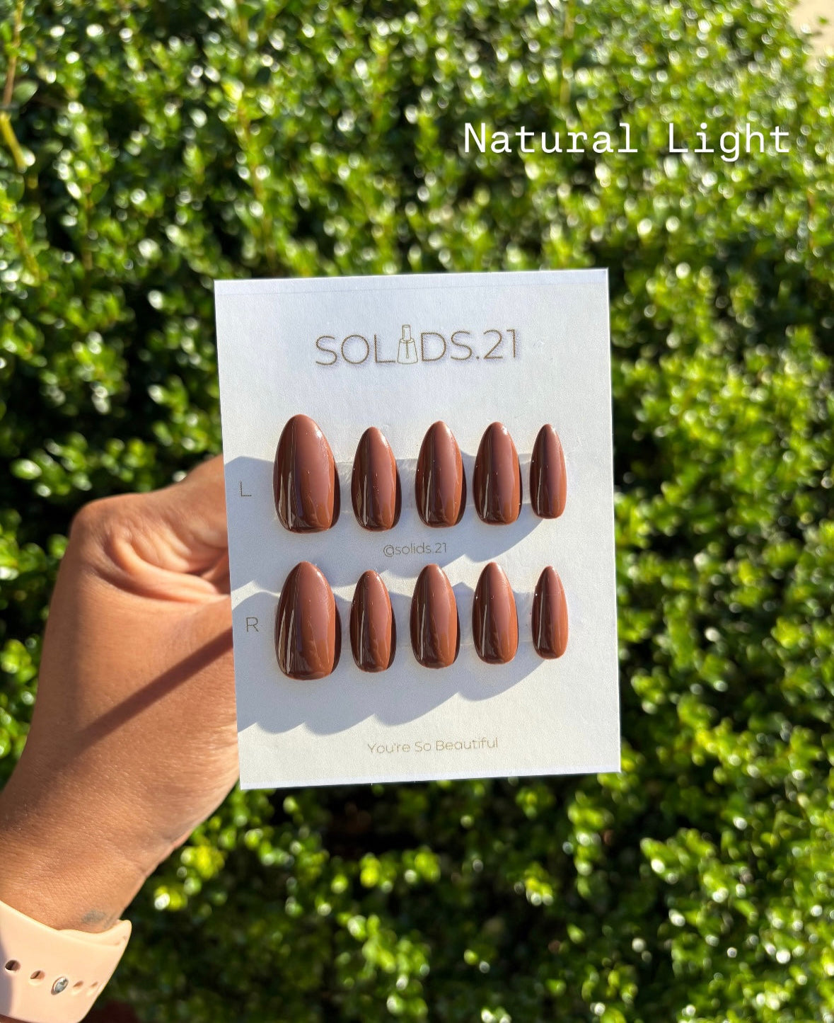 - 10 custom nails based on your choices of size, length, shape, & finish.
