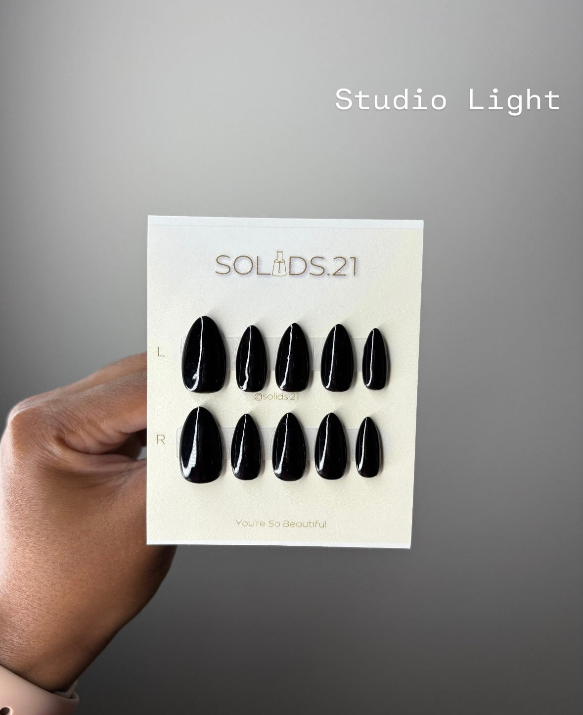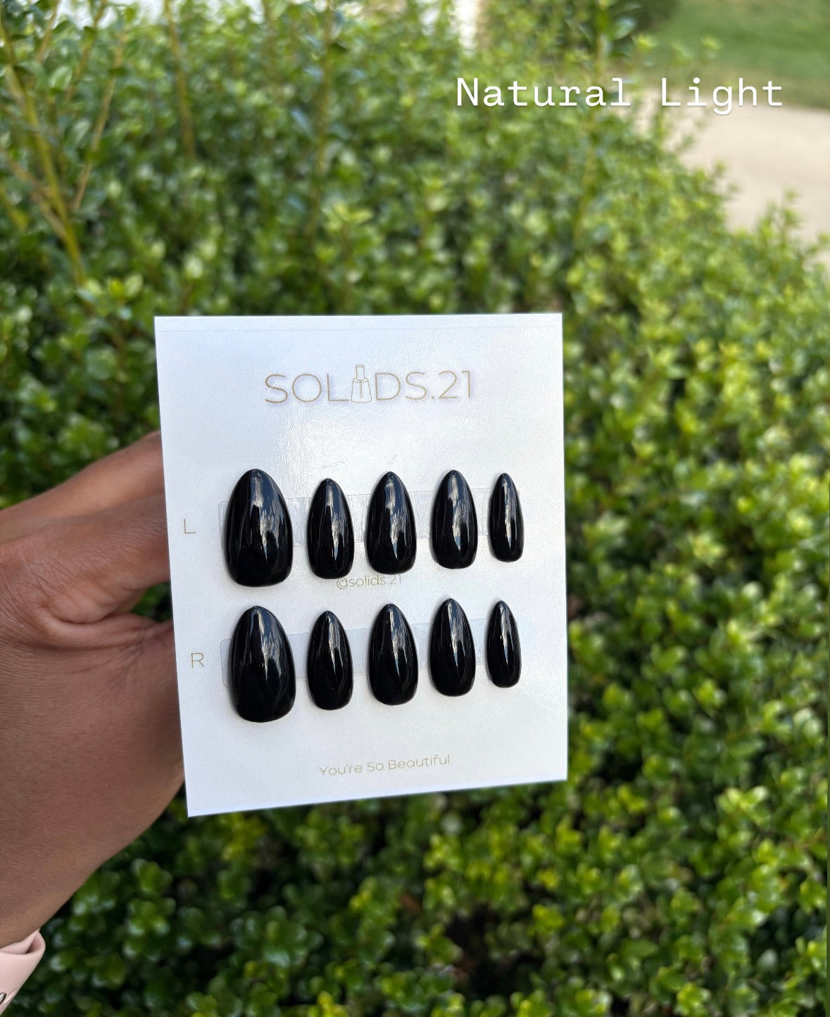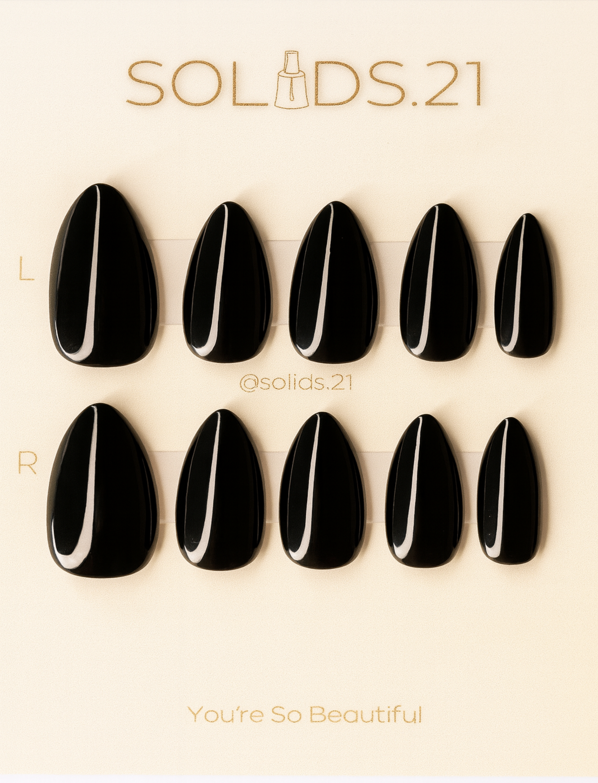 - 10 custom nails based on your choices of size, length, shape, & finish.